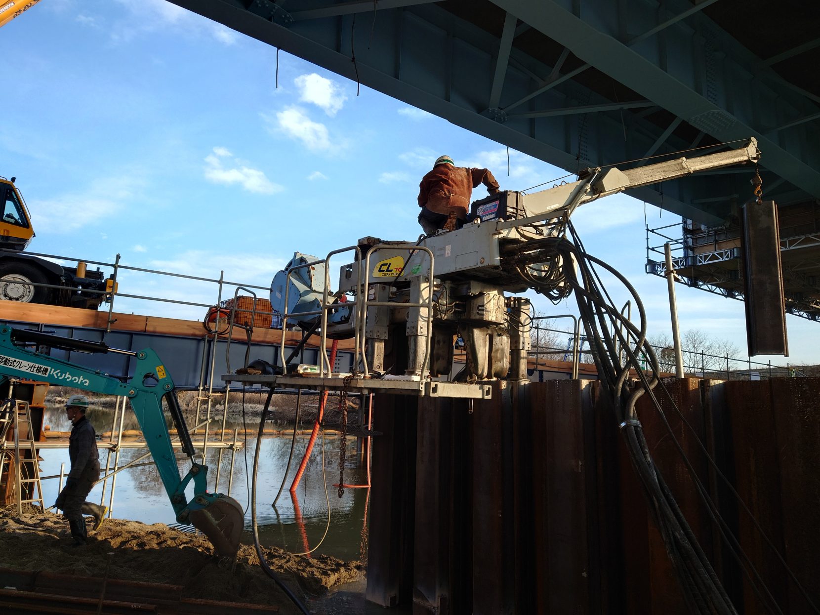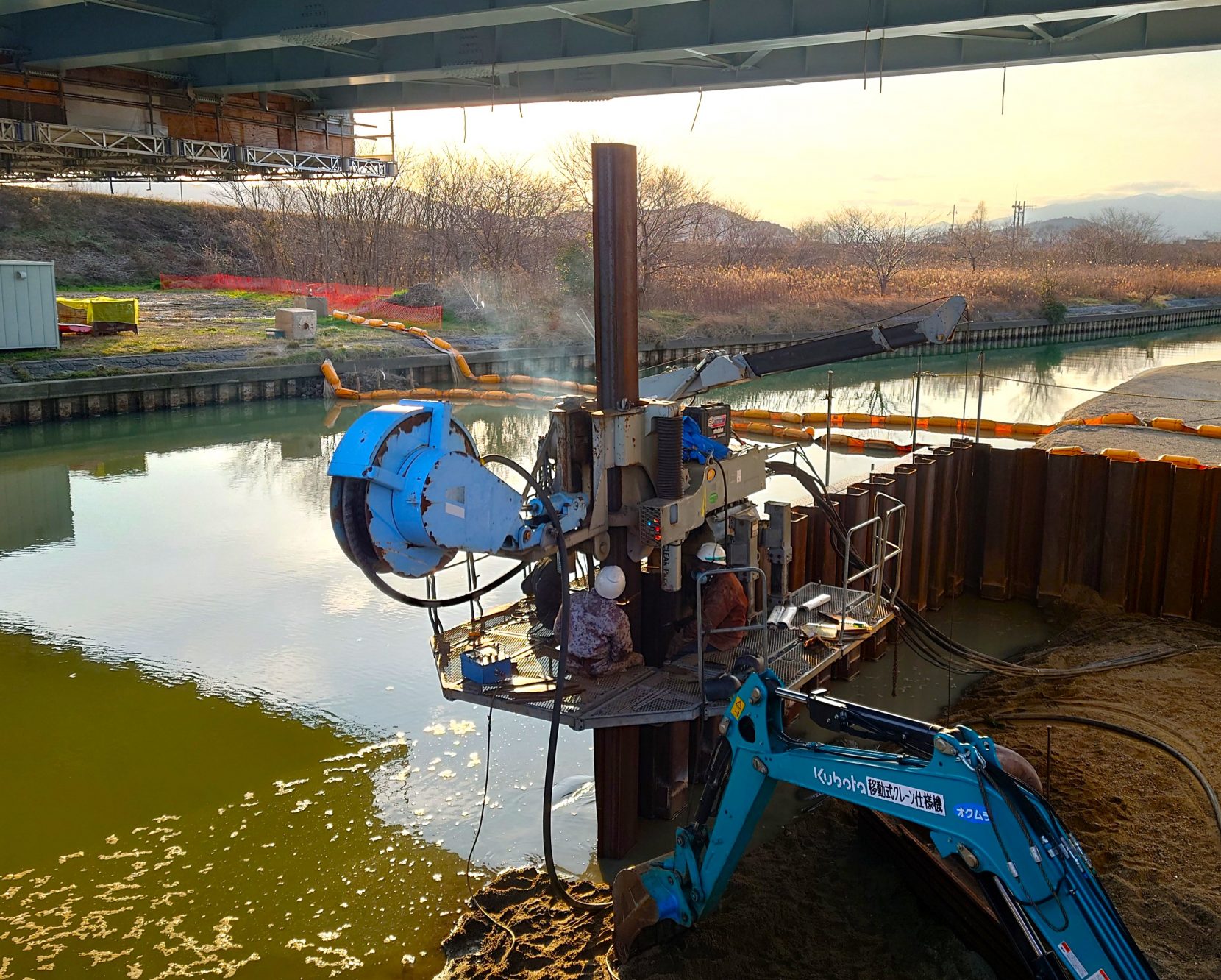 | 備考 | ■N値 20<Nmax≦40 ■施工内訳 圧入 Ⅳ型 L=12.5m 35枚 圧入 Ⅳ型 L=12.5m(3箇所継) 88枚 圧入 Ⅳ型 L=12.5m(5箇所継) 9枚 引抜 Ⅳ型 L=12.5m 35枚 引抜 Ⅳ型 L=12.5m(3箇所切断) 88枚 引抜 Ⅳ型 L=12.5m(5箇所切断) 9枚 ■工事概要 ・耐震補強工事の為、 鋼矢板を圧入施工しました。 |